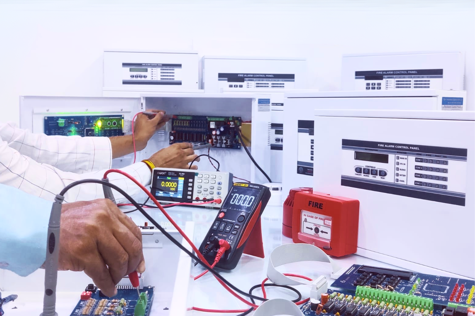 The assembly and testing wing integrates all fabricated and electronic components into fully finished, certified fire alarm products.