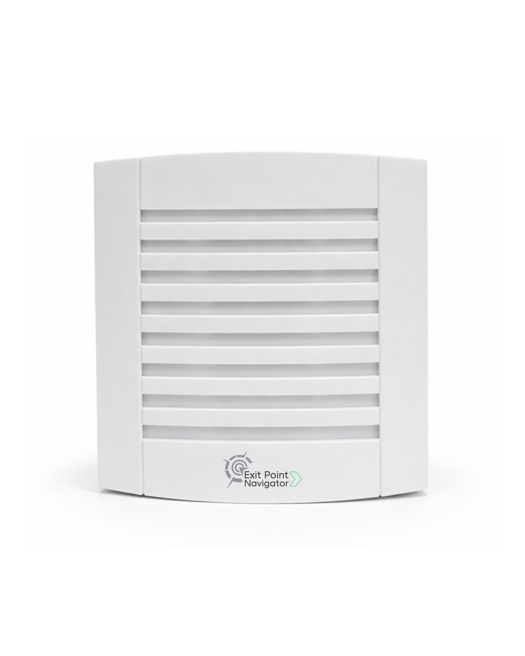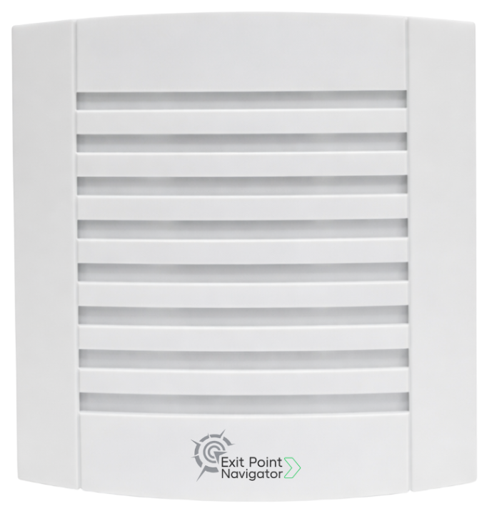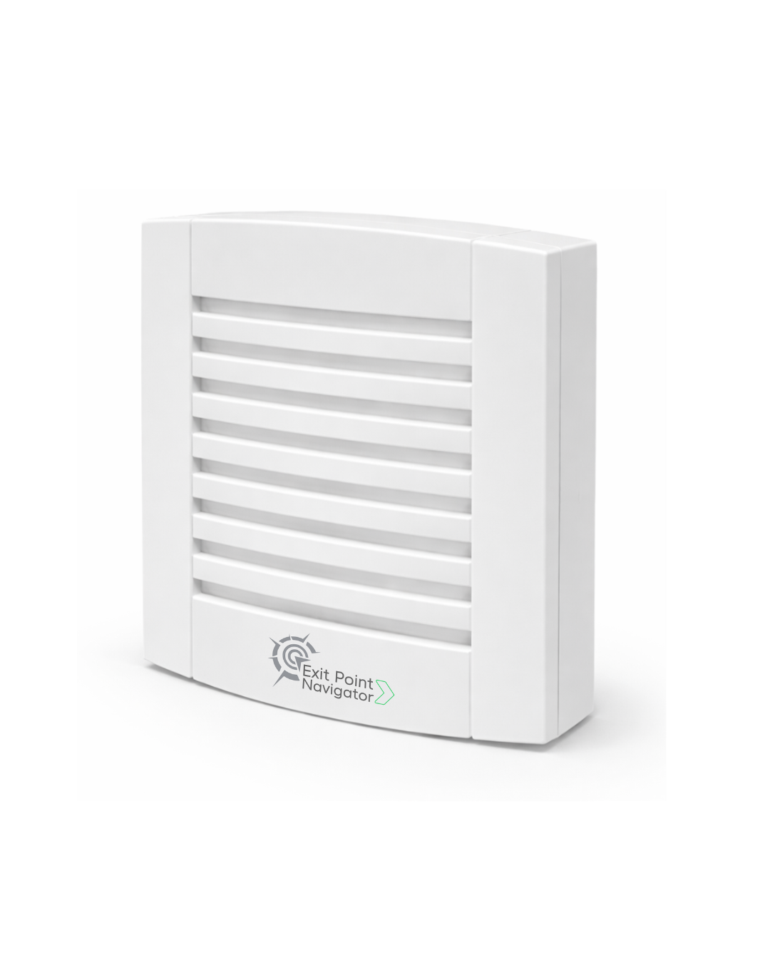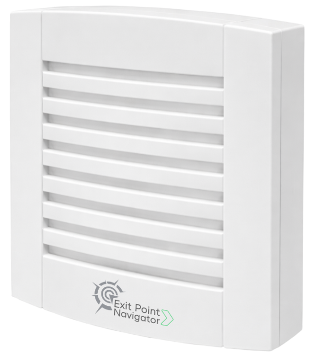EN 54-3 compliant Exit Point Navigator Sounder with 90 dB speech alarm, 24–42V DC loop powered, 20 programmable messages in 5 languages.